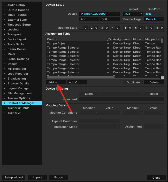 As we have just added a ‘In’ mapping Traktor conveniently remembers this.