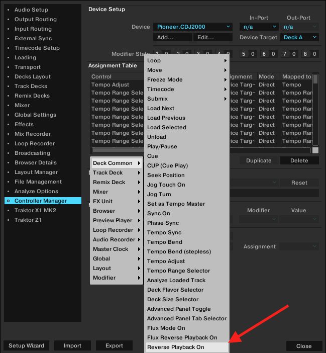 Navigate to ‘Reverse Playback on’ – within ‘Deck Common’